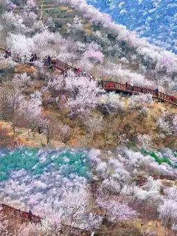 🚩In mid-to-late March, the peach blossoms here bloom all over the mountains, stretching for several kilometers. As far as the eye can see, the entire valley is dyed a romantic pink, as if you've stepped into a paradise. It's both breathtaking and incredibly photogenic!