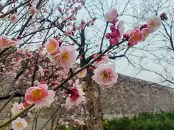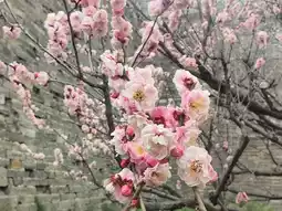 Strolling through the park, you will see "Guyuan New Spring" located under the corner tower on the east side of the park, which is dominated by pink plum blossoms such as peach blossoms, green calyx, big feathers, and palace pink; "Plum Garden Splendor" located next to the corridor square in the middle of the park is dotted with red, white, and pink plum blossoms such as cinnabar, green calyx, and human-faced peach blossom; "Xiling Xiangyuan" located next to the Model Worker Square on the westernmost side of the park, plum blossoms of varieties such as jumping branches and powdered plums emit bursts of fragrance, and the ancient Ming city wall and the delicate plum blossoms complement each other.