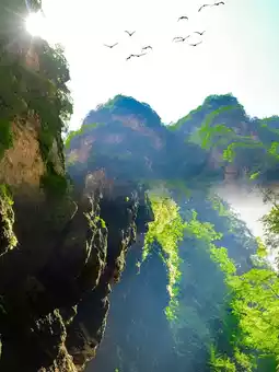 👉 Tianwang Tower: Rising from the ground like a giant guarding the canyon, it offers stunning views from different angles. Its majestic form, combined with the surrounding mountains and rivers, creates a picturesque scene, especially breathtaking during sunset.