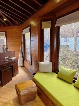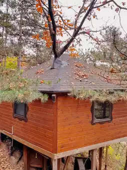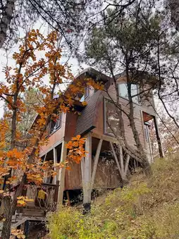 It's like a cabin from a fairytale world. Each tree house is unique. 🛖 The rooms are super cozy and well-equipped.