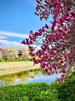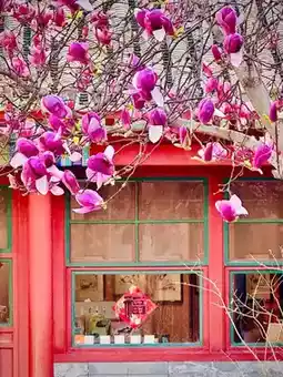 The pink magnolias in the courtyards are beautiful, complementing the classical elegance of the small yards. Perfect for enjoying coffee, flower viewing, and basking in the sunshine!