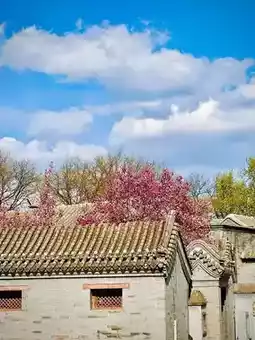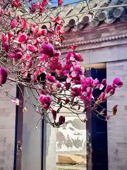 Located in Yu'er Hutong, the quaint courtyard features a pink magnolia tree, a white magnolia tree, and a flowering crabapple tree, all in bloom, creating a charming scene with the courtyard!