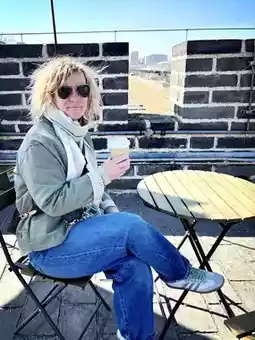 From there we walked to the Ming Dynasty City wall relics park by the southern corner tower. There is a display of the history of the old city wall in pictures inside and as you walk on the wall you can find this very cozy little cafe. They serve excellent coffee.