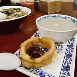 This is my first time trying soy milk. The unique fermented taste is really impressive. It’s hard to describe the flavor, but when paired with crispy doughnuts and pickles, it magically becomes acceptable! Although it can’t be said to be delicious, at least I can drink it and I finished the whole bowl!