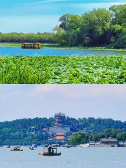The disembarkation point is at the South Gate of the Summer Palace. The dock here is crowded with people, not on the shore but in the water, swimming, diving, rowing, and lying in the sun. It is as lively as a summer beach. Now that we were at the Summer Palace, we bought tickets to enter. The South Gate entrance to the park is a relatively remote place, and there are not many people except for the cruise ship ticket office, but you can get a glimpse of the vastness and magnificence of the entire Kunming Lake, which is worth the trip.