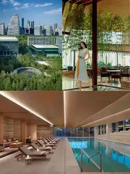 The hotel is adjacent to Wangjing Central Park in the north and a natural garden in the south.