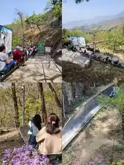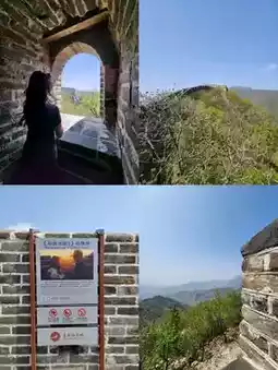 🛝 Mutianyu East side: The cable car uphill only has a fall lock. It doesn't take long. It's not scary at all. You can sit in each cable car for 2 people. When the cable car goes to the top, we will be at Fort 6. We can walk from Fort 6 to Fort 1, but the guide recommended that we walk to Fort 4, which is the highlight. There will be 3 towers in a row. Then come back down by taking the Taboggan. This is really fun. There will be a control in the middle. If you push forward, it will go faster. If you pull back, it will brake. The slide down takes quite a while. I feel that it is worth the money because it is so much fun. Along the way, there are beautiful flowers to see while going down.