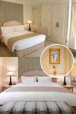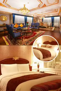 The hotel's exterior features a rich Southern European decorative style, with beige walls complemented by exquisite and elegant French courtyard-style gardens, showcasing the Parisian charm of the 19th century. Entering the lobby, the 17-story atrium structure is magnificent, with splendid crystal chandeliers, elegant marble floors, and exquisite artwork, making you feel as if you're in a European palace. The staircases on both wings of the lobby and the guest room corridors that wrap around to the top floor are decorated with gold plating, creating an atmosphere reminiscent of a grand golden theater.