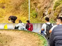 On the way down, it was lucky. The queue was not long and we got to ride the slide down.