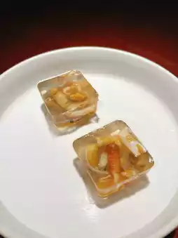 Two appetizers. The Tu Sun Dong (earth worm jelly), a famous Fujian delicacy with an intimidating reputation, has a chewy texture without any odd smell. It's much better than what I've had on the streets of Fuzhou. The Five-Spice Roll perfectly captures the authentic local Fujian flavor, with prominent five-spice notes and complex taste layers that brought back wonderful memories of Fuzhou and Quanzhou.