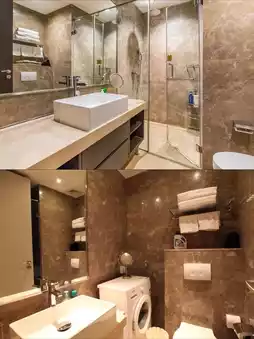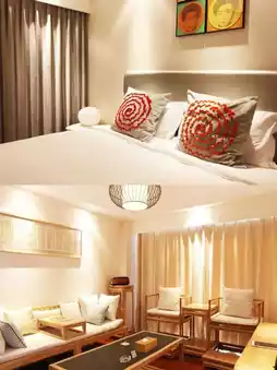 🛏 Complete facilities: The rooms are designed by independent designers with custom furniture, full of high-end vibes. The rooms have a washing machine, refrigerator, and microwave, making it as convenient as being at home. There is also an open kitchen with a full set of cooking utensils. If you want to cook, you can borrow cookware🍳 The door lock is opened with a QR code, full of technology🔒 20M independent optical fiber broadband, surf the Internet anytime. 24-hour air private assistant service, any needs can be quickly resolved. Constant temperature and humidity, 24-hour fresh air system, keep the room air fresh at all times, it's so considerate💕