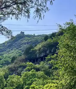 Second paragraph, mountain view. Further ahead is the "Nine Bends and Listening to the Piano" climbing point, where you can see the Great Wall and explore the caves (1 km).