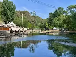 The first paragraph, water scene. First, navigate to Shentangyu Village, where there are many free parking spaces. This is a 2km plank road built along the Yanqi River where you can play in the water. There are many places to eat nearby, so you can join a group for lunch. I recommend rainbow trout. The rainbow trout in Huairou are all raised in live water.