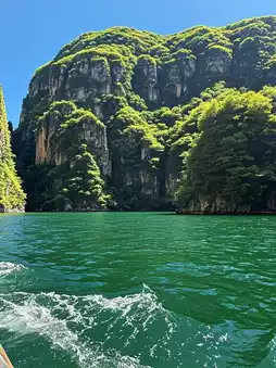 The "Little Guilin of the North" lives up to its name! Our whole family gasped when the boat entered the canyon ⛰️ Must disembark at Moon Bay—catch translucent fish in rock crevices 🐟.