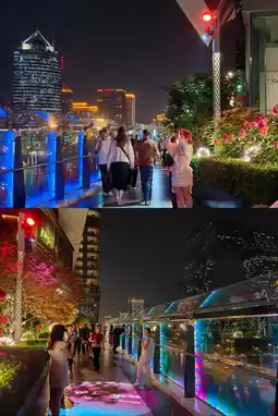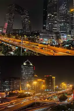 2️⃣ The Guomao rooftop on the 6th floor of the central area of Guomao Mall. Here you can capture the busy East Third Ring Road elevated highway, CITIC Tower, CCTV Headquarters, PICC Tower, and other core office buildings. The rooftop itself is also decorated with many lights and plants, making it great for photos.