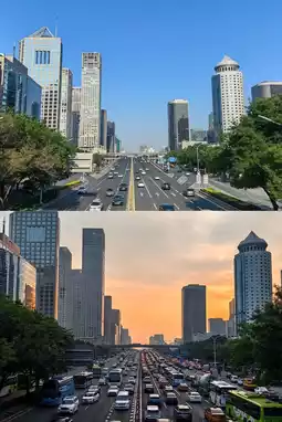 5️⃣ The pedestrian bridge on Jianguo Road east of Guomao. This spot also captures the bustling traffic vibe. You can shoot both the morning sunrise and the evening sunset here.