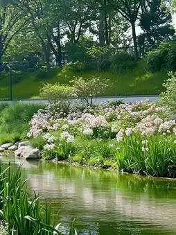 ✅Fairy Tale Overload: Pink evening primrose flower carpets + blue iris riverbanks