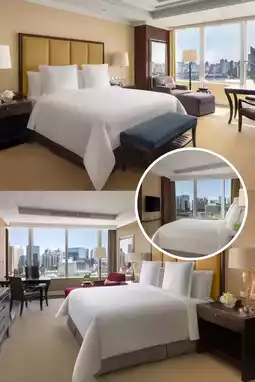 Nestled in the Liangmaqiao business district, Four Seasons Hotel Beijing showcases modern architectural aesthetics with minimalist lines. Its glass façade reflects the city’s neon lights, yet the moment you step into the lobby, an Eastern ambiance dispels the urban clamor—a bronze sculpture of *Galloping Horses* emerges in the light, ink-painted screens intertwine with light installations, and the concierge’s warm smile greets you like a spring breeze. As they effortlessly take your luggage, they softly mention, "Your room overlooks the Liangma River," embedding warmth into every detail of your first impression.
