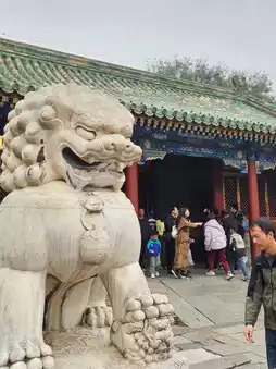 The architectural masterpiece is tall and majestic. There are exquisitely carved golden nanmu partitions in the hall, which were built by Heshen in the style of the Ningshou Palace in the Forbidden City.