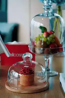 The red afternoon tea stand echoes Cellcosmet's packaging design, with its shape abstractly representing the hotel's architecture. The coffee features Cellcosmet's logo, accompanied by a specially crafted berry smoothie that's refreshingly sweet and tart. The lychee jasmine mousse offers silky creaminess, the seasonal sweetness of lychee, and a delicate floral aftertaste.