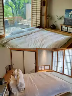 šæ The loft room features large floor-to-ceiling windows that can be fully opened, making the space airy with great views of the opposite mountainš. The projector gets frequent use, and both breakfast and Ć la carte dinners are exquisite and varied.