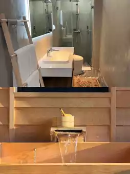 šæ The room is fully equipped with a coffee machineāļø, kettle, various glassware, and complete bathroom amenities. There's an indoor and outdoor soaking tub available anytime, complete with Gero Onsen powder and rose petalsš¹.