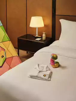 ✨Embrace the season with the "Family Joy" suite package, creating cherished moments for parents and children alike. The Little Gems Club offers exclusive treats for young guests—handcrafted serpentine gemstone chocolate cakes, plush toys, play tents, passport holders, and more—weaving a dreamlike wonderland. In the suites, Italian luxury harmonizes with Eastern aesthetics: Calacatta marble tabletops, 300-thread-count premium linens, and elegant red-and-black lacquerware accents embody Bulgari’s distinctive Italian elegance, ensuring every family leaves with unforgettable memories.