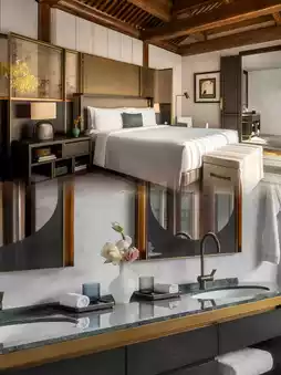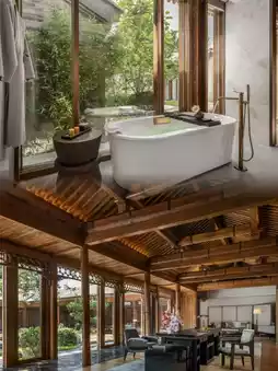 đ Rooms: All 42 guest rooms are duplex suites with private courtyards, starting from 103ăĄ. They perfectly blend traditional siheyuan architecture with modern amenities: B&O sound systems, Dyson hairdryers, smart AC hidden beneath wooden beams, and minibars stocked with Jing-A craft beers and Arctic Ocean sodas.