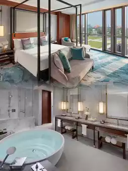 Nestled in Wangfujing's Goldfish Hutong, the hotel boasts a divine 20th-floor vantage point. Inspired by ink paintings and bamboo shadows, the rooms feature floor-to-ceiling windows framing panoramic views of the Forbidden City. At night, soak in a rose-infused bath while admiring the illuminated corner towers—pure magic! Even the bedside features Forbidden City-themed scented candles, and the room key is shaped like a "Ruyi" (auspicious scepter)—a dream for detail lovers!