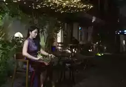 As night falls, the courtyard comes alive with the sound of the guzheng. Performers dressed in Hanfu play passionately under the soft glow of lights and tree shadows, immersing guests in the charm of traditional culture. In this moment, it feels as though you’ve traveled back in time, standing amidst the elegance of ancient melodies.