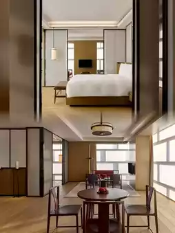 The moment you step into the hotel, you’ll be amazed by the 17-meter-high lobby! The clever combination of materials like natural wood, bronze, and silk creates an interplay of light and shadow that embodies both the subtle elegance of the East and the modern simplicity and grandeur. The spiral staircase and glazed art installations are perfect photo spots📸—it feels like walking into an immersive art museum.