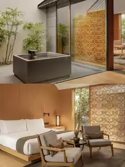 ✅ Exclusive courtyard + dual private hot spring pools! The indoor pool is bordered with raw wood and bamboo, where hot springs mingle with mountain breezes as you chat with your boyfriend, making every pore bubble with joy ♨️; the outdoor pool hides under pine and maple trees, offering mountain views perfect for that Instagram-worthy "backdrop shot" 📸