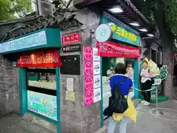 A must-try is the famous “Beijing Yogurt”. There are many brands to choose from. We liked this brand. We walked around and ate while looking at the shops. It was very enjoyable.