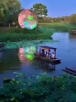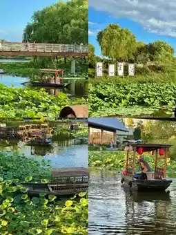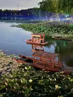At dusk, ride traditional paddle boats through moonlit lotus ponds