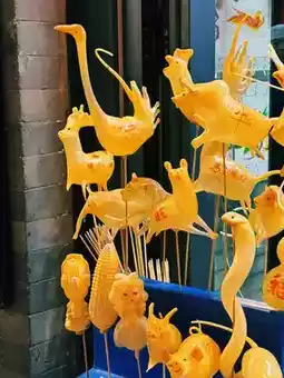 • Traditional Chinese snacks like sugar-coated candies, nut-based treats, and local fried delicacies.