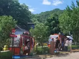 The Mutianyu Great Wall lower station is your welcoming gateway to one of the best-preserved sections near Beijing. Adventurers can either choose to ride the chairlift towards the east route or cable car towards the west route. Nearby, a commercial street buzzes with cafes, souvenir shops, and local restaurants—perfect for grabbing coffee or a bite before or after your hike. There’s ample parking—both underground and above ground—with over 1,000 spots available. Take a picture towards the sample cable cars or grab a bite!