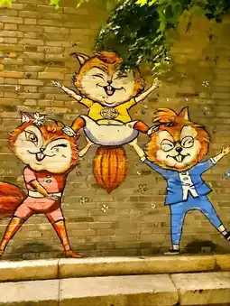 In Gubei Water Town, wonders never cease. Every corner of the town, inside alley ways, there are surprises in the form of street art, which could never have existed in ancient times. This gives the town another level of charm. You can see either traditional , western or abstract art painted at the walls. Our favorite of course is the Cat Mural which is very cute!