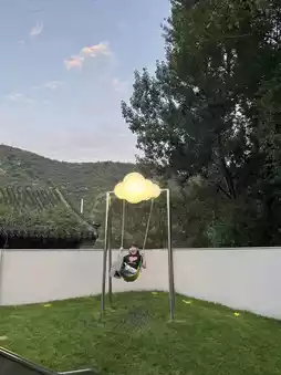 The moment you step into WanderHotel, it feels like entering a hidden paradise. Surrounded by lush green mountains and trees, the view from the windows includes the winding Great Wall and a babbling brook. The courtyard features a grassy lawn, a swimming pool, and a cloud swing, while the rooftop offers a scenic viewing terrace. In the evening, enjoy the mountain breeze and the view of rolling hills—it’s incredibly soothing. There’s also an adorable chubby cat in the yard. Initially mistaken for a pregnant female, it turns out to be a plump male cat with a hilariously reluctant expression 🤣.