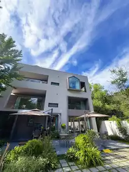• Step out onto the balcony to be greeted by lush greenery. The large terrace even has a tent, making it an ideal spot for an evening drink. Wake up to birdsong and fall asleep to the sound of the brook—city stress melts away instantly.