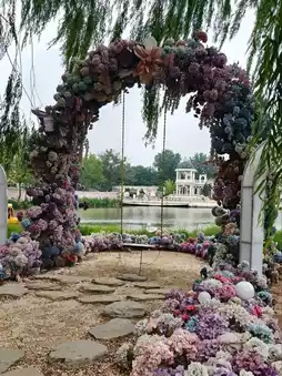 ✓ Giant Floral Arch + Swing (with POP MART as your fairytale backdrop)