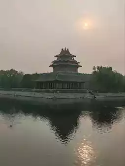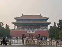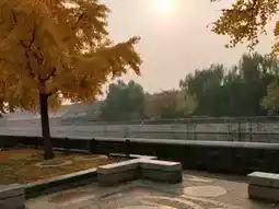 Stepping out from Beihai Park's south gate and heading eastward, we were greeted by ancient trees lining the city walls, their leaves ablaze in red and gold—autumn at its peak. Gingko trees along the road shimmered in dazzling yellow, harmonizing with the glazed tiles of the Forbidden City's corner towers. The moat's rippling water mirrored the clear sky and vibrant foliage, a sight that lifted the spirit. Continuing onward, we arrived at the entrance of Jingshan Park, facing the majestic Gate of Divine Prowess in the distance.