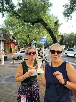 Our biking adventure was not just about the sights; it was also a culinary journey. Dom led us to some of the best street food vendors hidden within the hutongs, each stop offering a tantalizing taste of authentic Beijing cuisine.