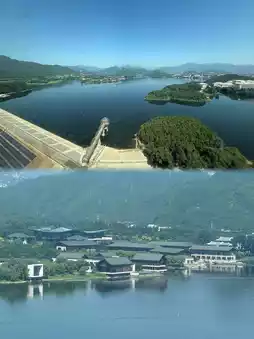 The room layout features a standard double room design with limited space. The windows are fixed and cannot be opened, making the outside view particularly important. A lake-view room offers a superior visual experience, and the scenery from the dam is equally breathtaking.