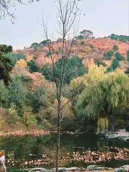 The autumn scenery of Jingcui Lake unfolds like a captivating painting. The mirror-like water reflects the fiery hues of the surrounding forests, where maple leaves blaze red, ginkgo leaves shimmer gold, and willow tendrils sway gently in the breeze. Strolling along the lakeside path, one gazes up at the kaleidoscopic mountain woods and down at the tranquil lake dotted with withered lotus leaves. This poetic harmony of sights soothes the soul, leaving visitors enchanted and reluctant to depart.