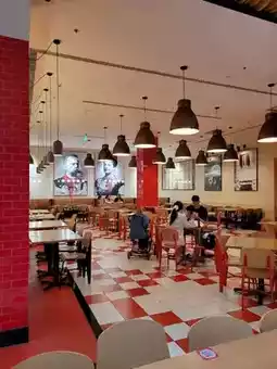 Red Brick Oven Pizza at Universal CityWalk Beijing blends rustic charm with a lively, modern vibe. Warm postmodern ambiance with classical portraits and decorations, the glow of the aforementioned red oven, and the aroma of fresh bakes fill the air, creating a welcoming escape from the bustling streets outside. It’s the perfect spot to slow down, savor the moment, and enjoy pizza in a setting that feels both vibrant and homey. Plus, snap a pic on the iconic red scooter!