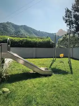 ▪️ Outdoors: Step through the glass doors, and you’re greeted by a vacation vibe! Cloud-shaped swings and slides (which glow softly at night!), a sprawling lawn perfect for running wild, and a clear splash pool (moms, the lounge chairs under the parasols are ready for you—just relax!).