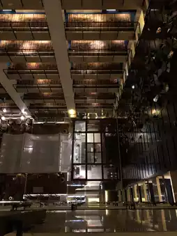 The 27-story landmark building was designed by HBA. The lobby replicates the Forbidden City's gold leaf dome and coiled dragon carpet, exuding imperial grandeur! Under the Czech crystal chandelier, 400 steel butterflies flutter up to 66 meters high, perfect for sci-fi style photoshoots📸. Guest rooms feature an ink-gray palette, with embroidered "Eight Views of Yanjing" above the bed and a smart lighting system that switches between work and sleep modes at the touch of a button—detail lovers will be thrilled.