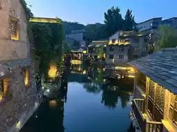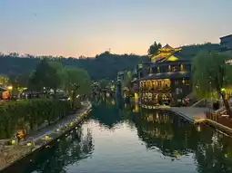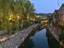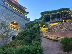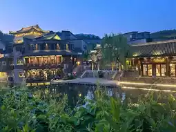 Gubei Water Town at night transforms into a dreamlike world of shimmering reflections and golden lights. The cobblestone streets glow under the warm hue of lanterns, while the quiet canals mirror the charming bridges and wooden houses. The air is filled with the scent of local snacks, and soft traditional music drifts from tea houses and open courtyards. Visitors can take serene boat rides under starlit skies, watch cultural performances, or soak in outdoor hot springs with the silhouette of the Simatai Great Wall glowing in the distance. The illuminated wall creates a majestic backdrop, making the entire scene feel like a living painting. The peaceful ambience, combined with gentle water sounds and twinkling lights, offers a romantic and calming experience. It’s a perfect place to slow down, embrace the moment, and immerse yourself in the beauty of ancient China at night.