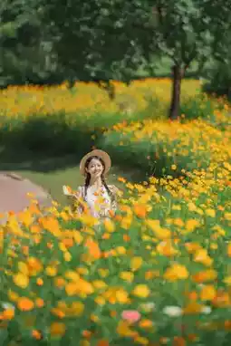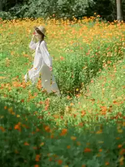 • After 4 PM: Sunset dyes the flower sea warm gold, side light highlights facial contours, skin looks translucent like a peeled egg.