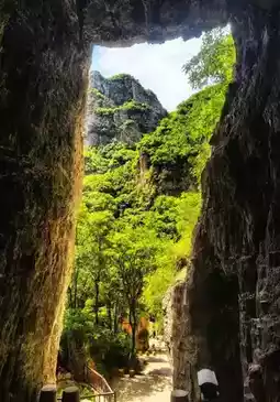 1. Fancheng Valley: Extends southwest, leading to the ancient temple of the dressing table at Luzishui, where the legendary Empress Xiao and Yelü Yanshou’s daughter once lived. The valley features karst fissures (One Line Sky), sinkholes (Sky Wells), Qianye Book, Black Dragon Pool, and preserves the "Chang, Wan, Huai United Anti-Japanese Government Site."